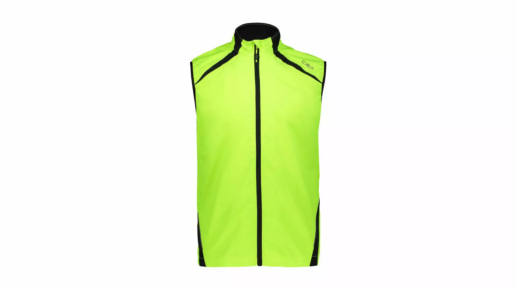 Eine winddichte Weste von CMP mit reflektierende Details und Gummizug in der Taille und am Ärmel.
