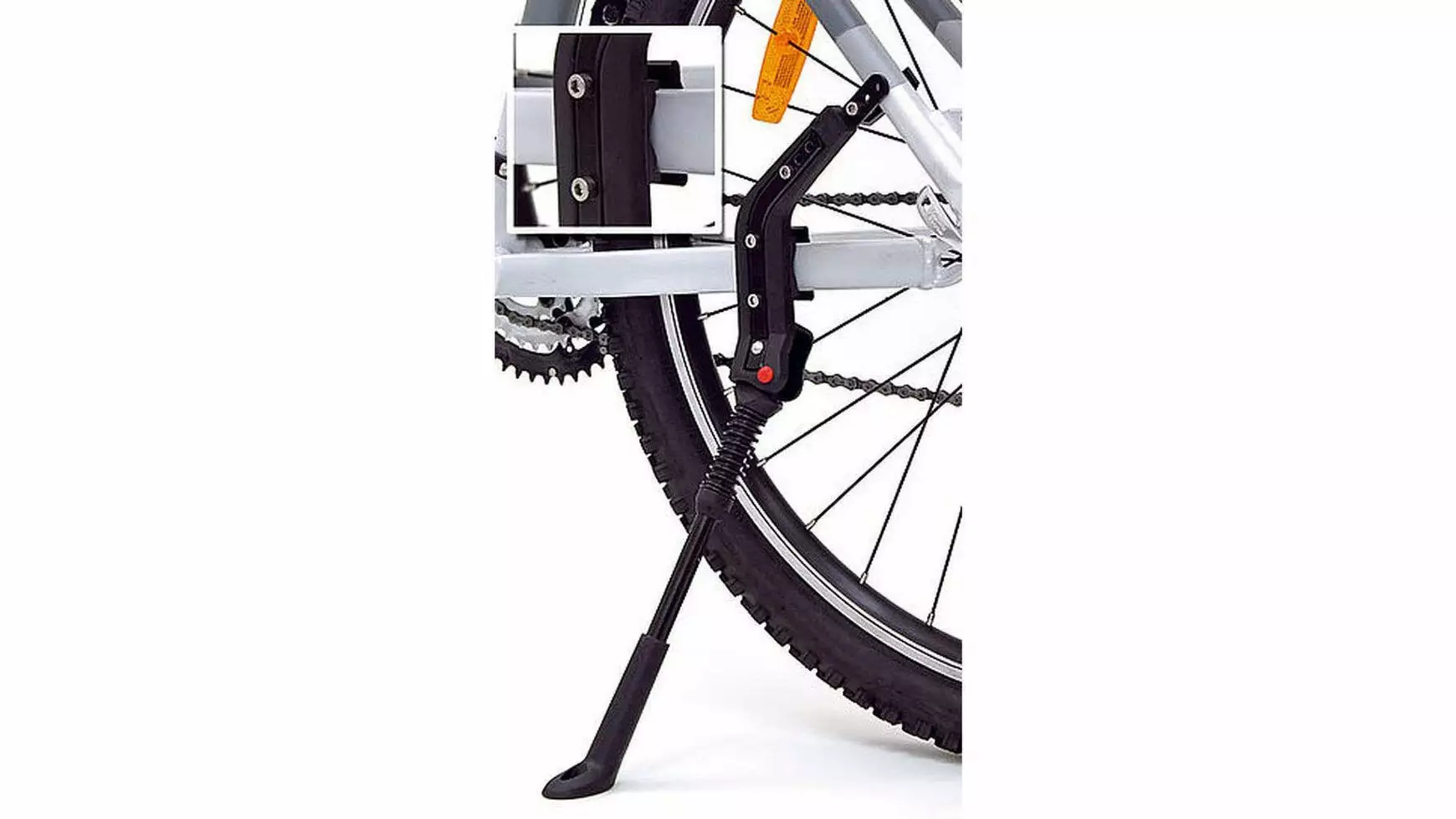 Universeller Hinterbauständer Universelle Prisma-Klemmung Kompletter Rahmenschutz An alle Rahmenformen problemlos montierbar Bis zu einem Rohrdurchmesser von 27 mm einsetzbar Für runde/ovale/eckige Rahmen Verstellbar Tragfähigkeit bis 25 kg