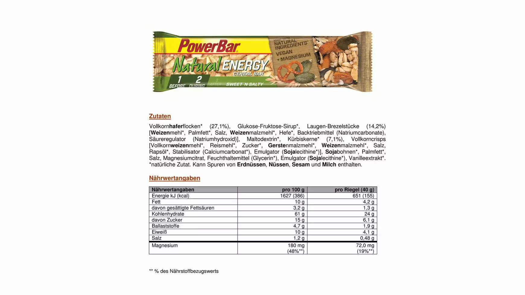 | Geschmack | SWEET N SALTY, STRAWBERRY-CRANBERRY, CACAO-CRUNCH, RASPBERRY CRISP |