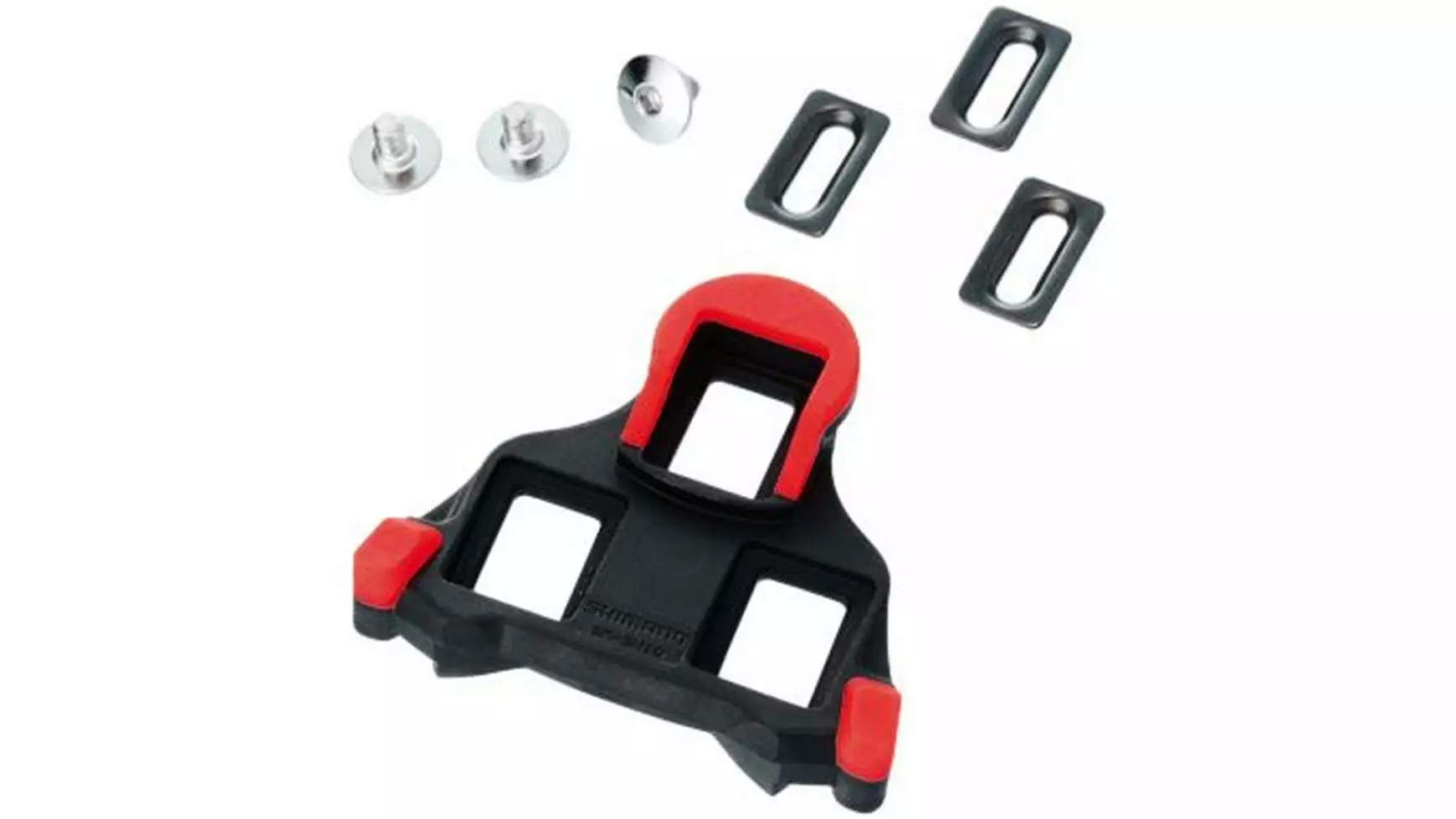 SPD-SL ist die speziell für das Rennrad konzipierte Weiterentwicklung des SPD-Systems. Diese Pedalplattform wurde spezifisch für die Anforderung von Weltklasse-Straßenrennfahrern entwickelt. Das Ergebnis ist eine nahtlose Schnittstelle zwischen Pedal und Schuhplatte für eine wirksamere Kraftübertragung unter den bei Wettkampfbedingungen auftretenden extremen Pedalkräfte. Rote Pedalplatten mit starrer Bindung.