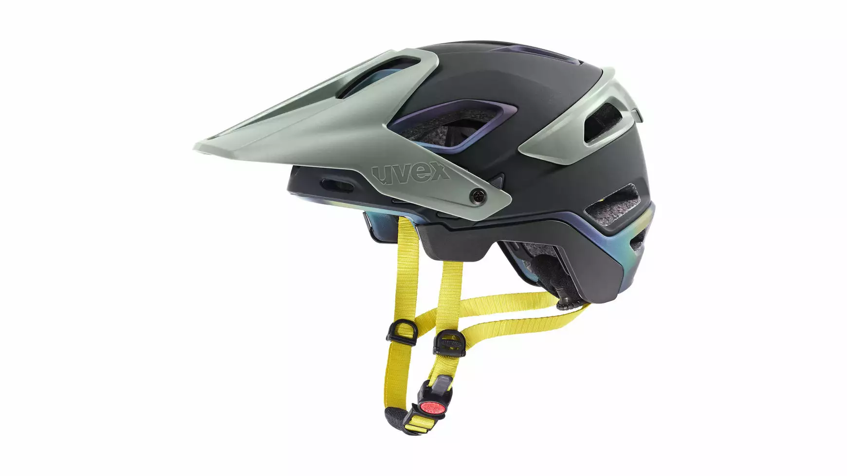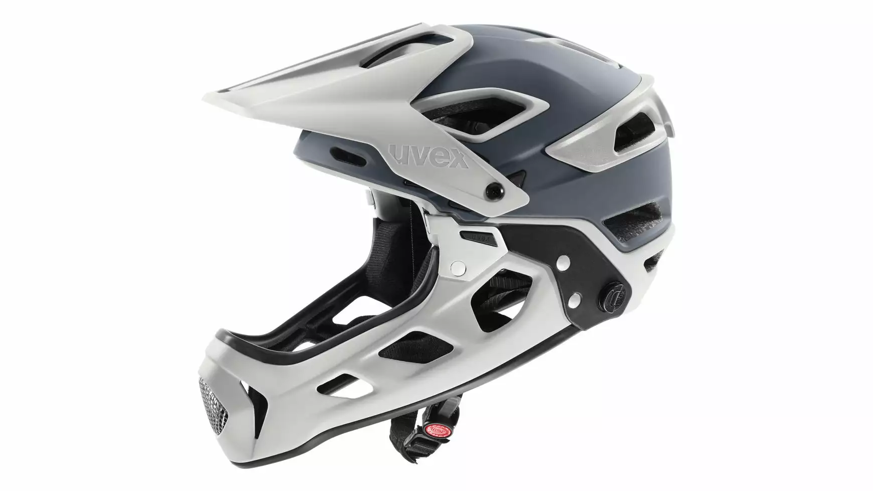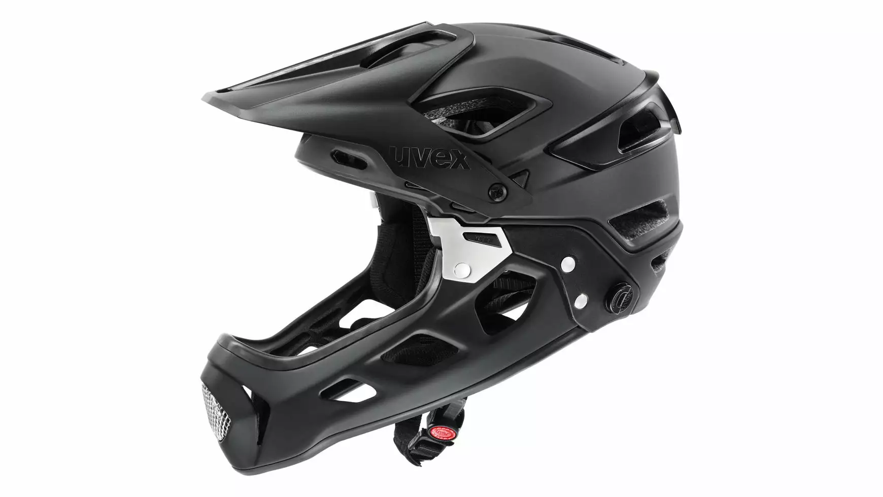 Keine Kompromisse! Uphill, Downhill, Flowtrail, Bikepark: Der Uvex Jakkyl Hde 2.0 ist immer die erste Wahl. In Sekundenschnelle verwandelt sich der Halbschalen- in einen robusten Fullface-Helm für satte Enduro Action. Beim Enduro Mountainbiken ist Vielseitigkeit gefragt. Wenn die Uphill-Passage gemeistert und die Knieprotektoren zurechtgerückt sind, fällt der Startschuss für den Uvex Jakkyl Hde 2.0. Mit nur einem Handgriff ist der abnehmbare Chinguard montiert. Aus der Halbschale wird so in Sekundenbruchteilen ein vollwertiger Fullface-Helm. Dämpfer auf, ein starker Tritt in die Pedale und schon geht es in Höchstgeschwindigkeit bergab. Dabei regulieren 14 Belüftungsöffnungen mit Fliegennetz das Helmklima. Die Größenanpassung erfolgt über das bewährte Anatomic IAS System. Clever: Unter dem verstellbaren Visier kann eine Goggle geparkt werden. Für sicheren Halt auf ruppigen Trails ist eine Brillenbandhalterung mit an Bord.