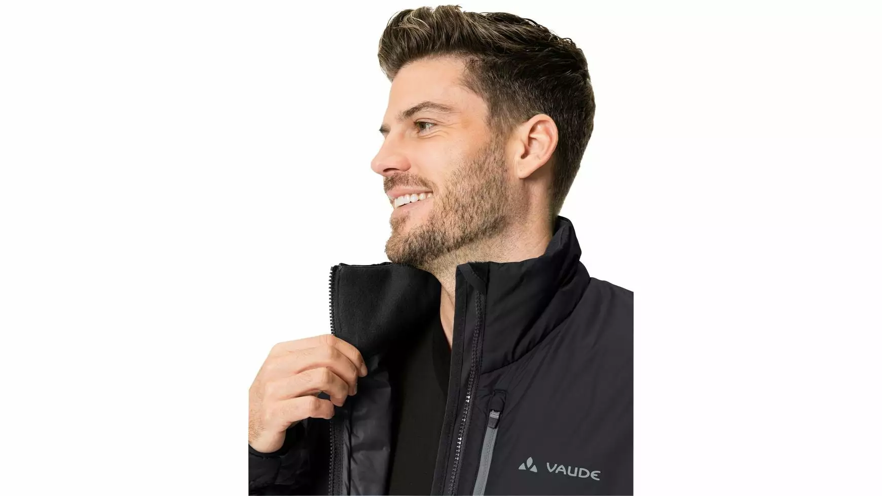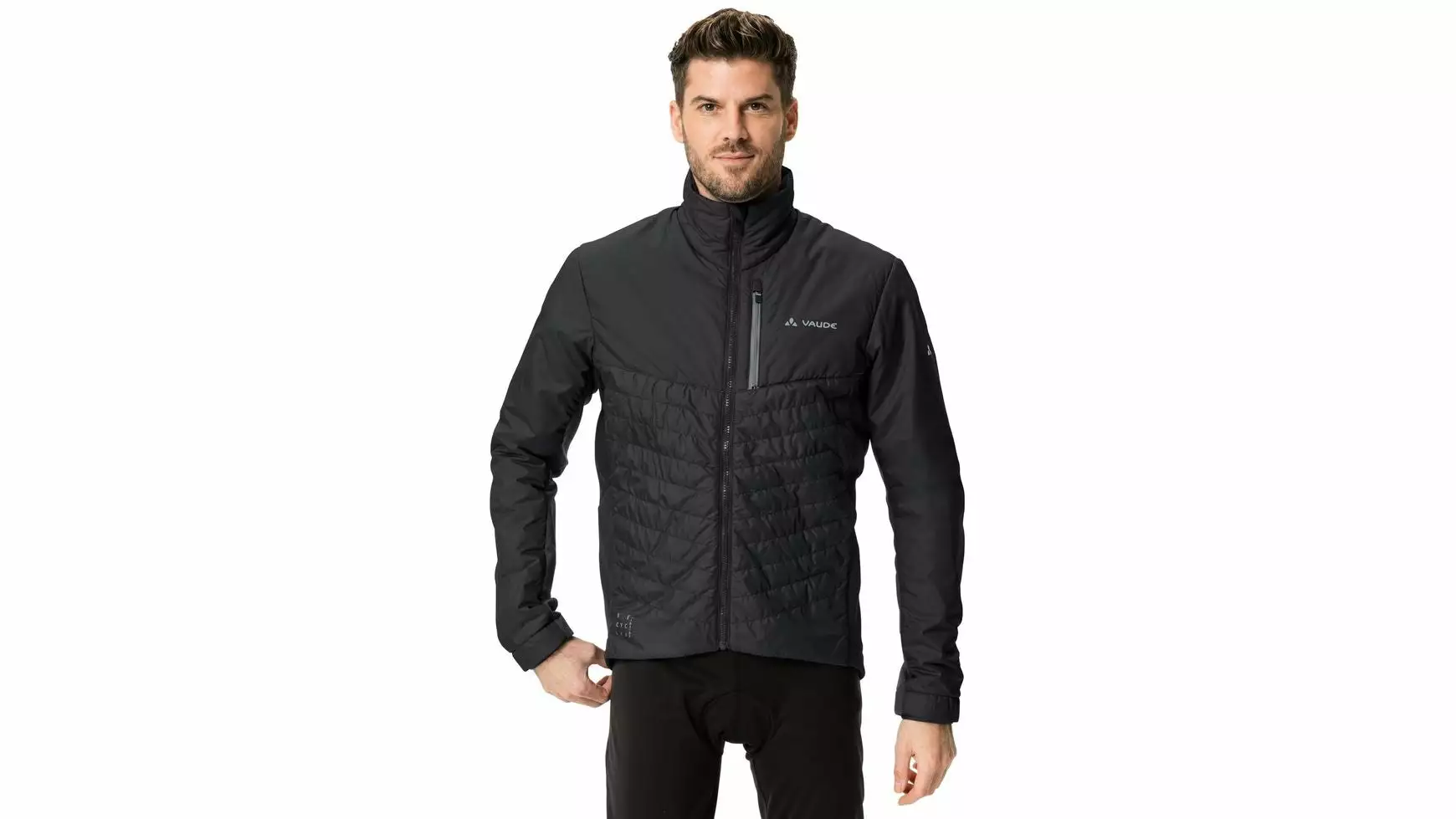 Zum perfekten Sitz tragen der enganliegende Kragen, die vorgeformten Ärmel mit über den Handrücken gezogenem Abschluss und der längere Rücken mit silikonisiertem Bund bei. Das wärmende Padding in der Front und im vorderen Ärmelbereich besteht zu 35% aus S.Cafe Material und zu 65% aus recyceltem Polyester. 4-Wege-Stretcheinsätze aus verschiedenen Fleeceeinsätzen im Rücken und im Unterarmbereich gewähren eine gute Beweglichkeit.